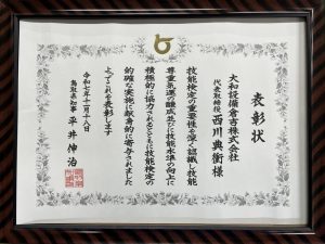 鳥取県知事より、「令和7年度技能検定協力事業所知事表彰」を受けました。
